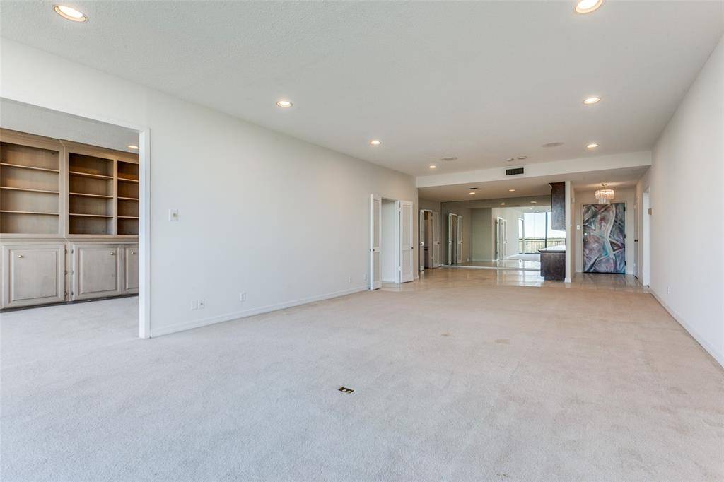 An amazing opportunity to lease this 1770 sq. ft. one bedroom condo at the Athena high-rise on the 8th floor with ALL BILLS PAID but internet. The owner opened up the 2nd bedroom for a second living area with beautiful built-ins in the primary bedroom, 2nd living area and dining room which offer excellent storage, display and serving areas. As you enter this fabulous space you have floor to ceiling windows in the living room. The primary is oversized with can lighting, built-ins and large walk-in closet. The dining room is open to the living area which makes it perfect for entertaining. The kitchen has a new refrigerator, a microwave, electric range with small breakfast area and pantry. The opening to the 2nd den is near the wall of windows so the flow from room to room is natural. The second den also has a wall of built-ins and a large walk-in closet. The Athena provides 24 hour front desk security & concierge services, an amenities area with a work-out room, party room, billiards, gym, library & an indoor heated pool. Fabulous location near Preston Center, North Park Mall and the Park Cities. Open to a 1 yr lease or longer.