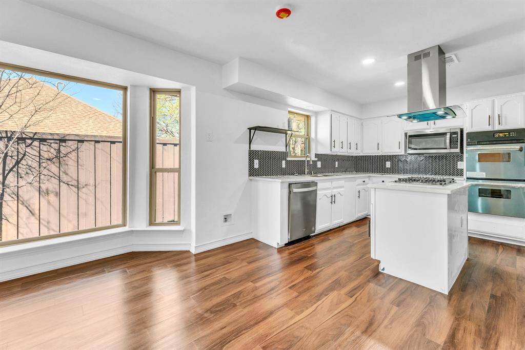 The remodeled kitchen is a true centerpiece, featuring a large island with a built-in cooktop, sleek wall oven and microwave, and plenty of workspace for cooking or gathering. Whether hosting family or entertaining friends, this layout makes everyday living effortless.