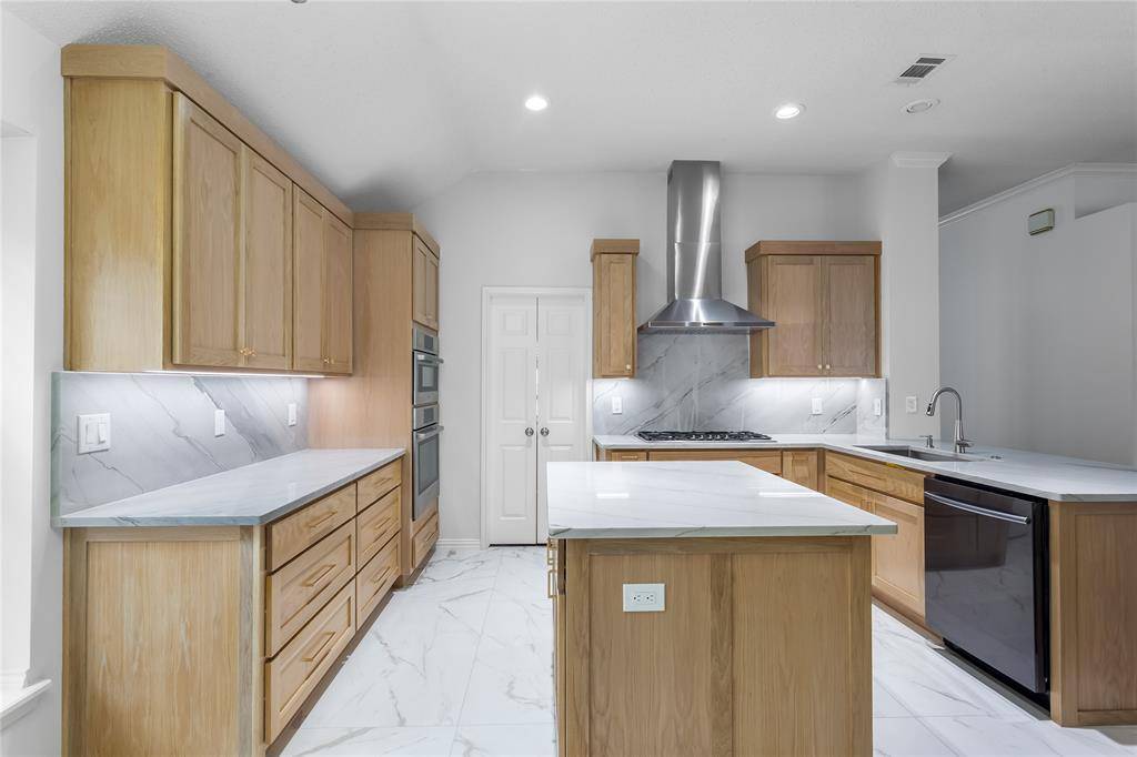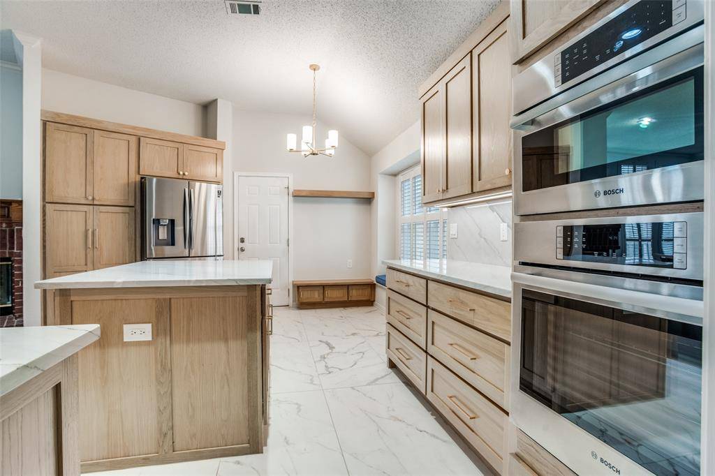 **OPEN HOUSE SATURDAY, 3.21.26, 2-4 p.m.** This meticulously maintained, single-story McKinney gem exudes pride of ownership and thoughtful updates throughout. The exquisite kitchen underwent a complete remodel in 2024, showcasing custom white oak cabinetry with 42-inch upper cabinets, pull-out shelving, deep drawers, and a generous island that includes refuse and recycling bins. A built-in pantry, soft-close hinges, under-cabinet lighting, and transitional hardware elevate the functionality and style of the space. Appliances have been upgraded to high-end stainless steel, including built-in Bosch microwave and wall oven, Thermador five-burner gas cooktop, Zephyr range hood that vents to the exterior, single-bowl stainless steel sink, disposal and shut off valves. The kitchen is adorned with stunning quartzite countertops, coordinating backsplash, and oversized 24x48 inch porcelain tile flooring that collectively create a bright, airy ambiance. The breakfast nook features built-in window and corner seating with a charming floating shelf, perfect for showcasing your favorite kitchen accents. The home's finish out boasts upgraded hardwood flooring that flows seamlessly from the front door through the living and dining areas, all four bedrooms, and all high-traffic zones—eliminating the presence of carpet altogether. An abundance of natural light fills the space, enhanced by vinyl replacement windows and elegant plantation shutters that elevate the home's aesthetic. The open floor plan is ideal for entertaining, while the split bedroom design ensures privacy and relaxation. Enjoy the benefits of living on a quiet cul-de-sac in a rare McKinney neighborhood with no HOA. The 70x122-foot lot offers ample space for adding a pool and the location offers convenient access to TX121 and US75, providing an easy commute to anywhere you need to go. Zoned for McKinney ISD, elementary-aged students will transition to Valley Creek Elementary in the Fall of 2026.
