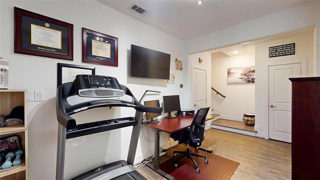 Modern 3-story corner unit condo! Terrific location just two blocks from Greenville and Henderson Ave with endless options for dining, entertainment, and shopping, PLUS only a short distance to downtown! Inside you will find 2 bedrooms, 2.5 baths and a 2-car garage with ample storage space! First floor living space makes an ideal home office. Main living on the second level offers an open concept layout perfect for entertaining. A spacious kitchen boasts quartz countertops with a glass subway tile backsplash, an abundance of bright white cabinetry, stainless appliances including an electric range, and large island with breakfast bar. Two bedrooms are located on the third floor, both with private ensuite baths and walk-in closets. Laundry is conveniently located on this level as well. The primary retreat with sitting area offers a luxurious bath with a dual sink vanity and frameless shower. Rich hardwood flooring flows throughout main living areas of the home with plush carpeting in both bedrooms!