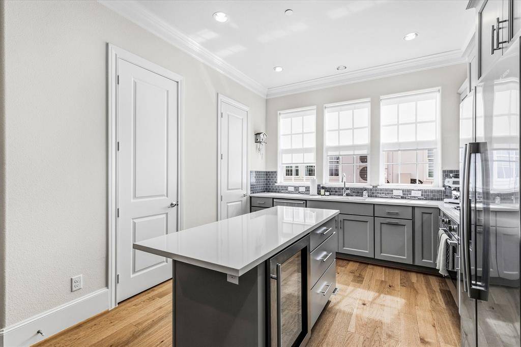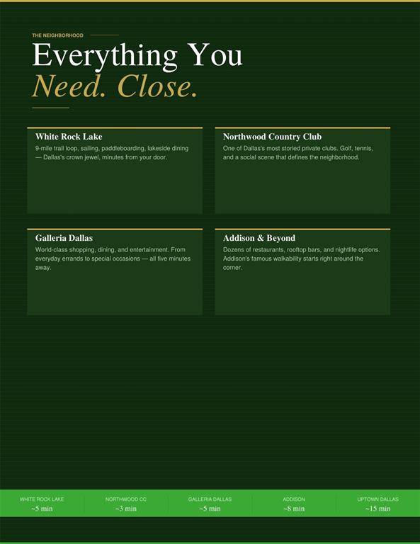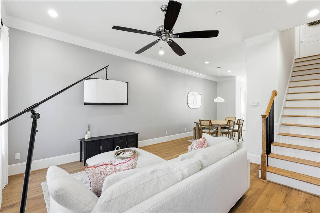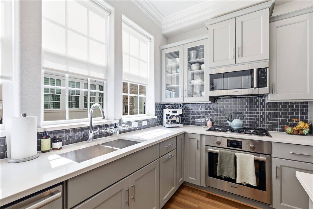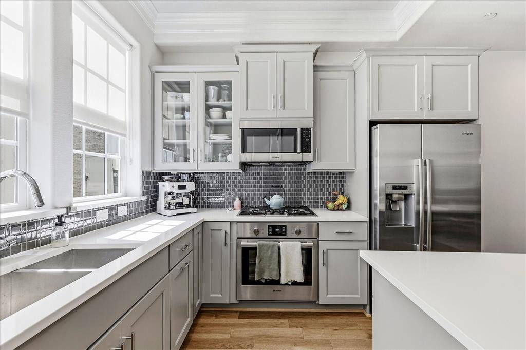 Modern 3-level brick townhome in a prime Dallas location with direct access to White Rock Creek Trail and White Rock Lake—no car required. This 2-bedroom, 2.1-bath home offers 1,350 sq ft of stylish living with hardwood floors throughout, a primary suite with board-and-batten accent wall and crown molding, and a beautifully appointed Bosch kitchen featuring quartz counters, gas cooktop, full appliance suite, and subway tile backsplash. Built in 2019, this home also includes a dual heat pump HVAC system and tankless water heater for ultra-low utility costs. Enjoy the convenience of an attached 2-car tandem garage with direct entry, plus HOA-covered cable, internet, water, trash, recycling, and landscaping. A rare combination of modern efficiency, low-maintenance living, and unbeatable trail access.